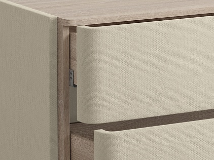 Столешница из ЛДСП - дуб сонома. Сочетается со всеми вариантами обивки комода и повышает уровень практичности.