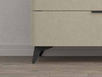 Высокие черные металлические ножки придают комоду не только устойчивость, но и особую выразительность. Этот элемент дизайна подчеркивает современный стиль мебели, добавляя ей элегантность.