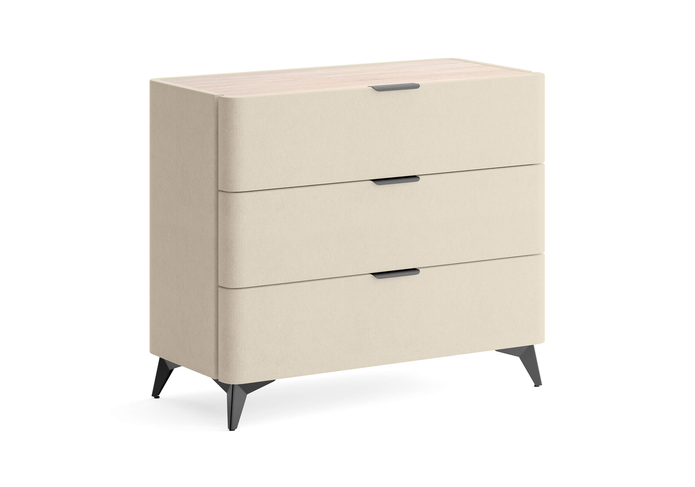 Столешница из ЛДСП - дуб сонома. Сочетается со всеми вариантами обивки комода и повышает уровень практичности.